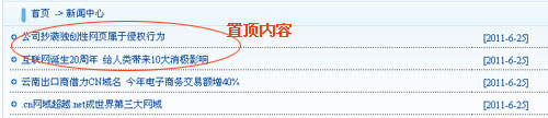 d、欄目置頂:是指該文章在該欄目中顯示在第一條,如果該欄有多條置頂,則按時間先后顯示,如下圖: